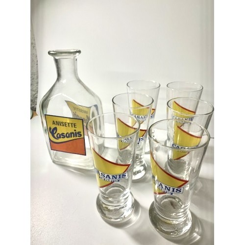 Ensemble de 6 verres Casanis base ronde " Le Pastis" + Carafe Casanis Anisette