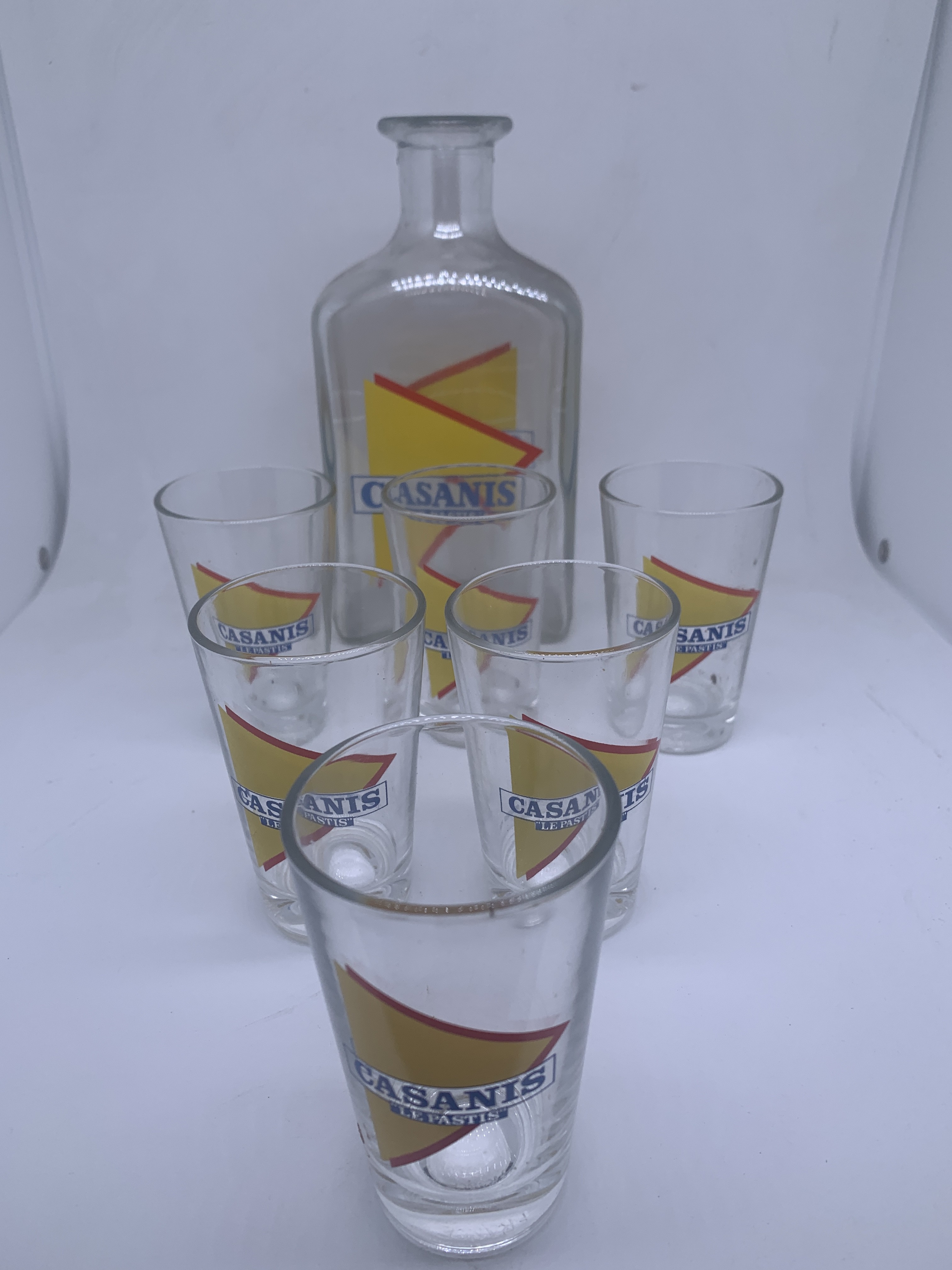 Lot de 6 petits verres CASANIS Momie avec sa carafe assortie / Ensemble apéritif vintage