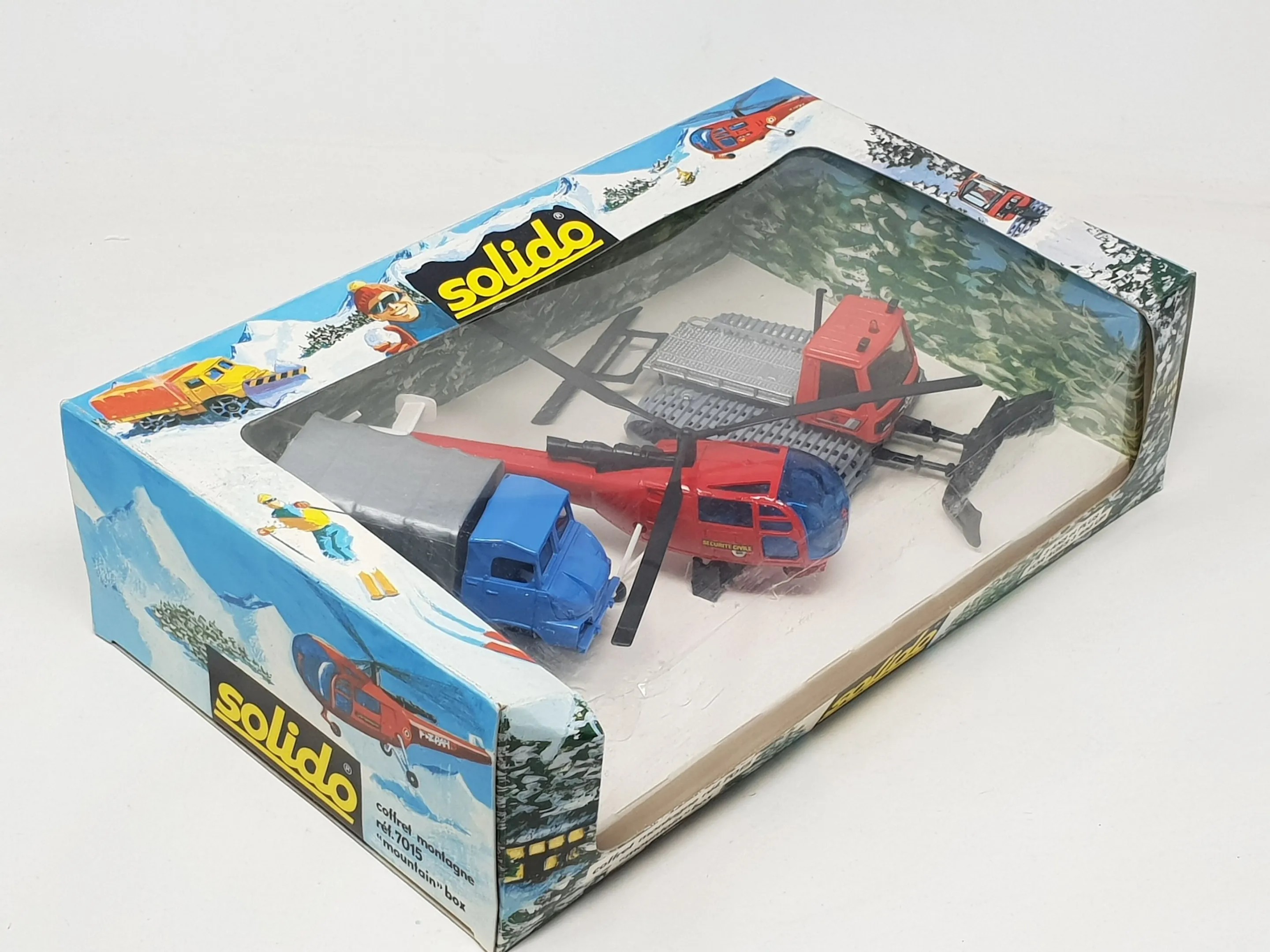 Coffret Montagne : 3 véhicules : Simca Unic 4x4, Hélicoptère, Dameur Kassbohrer