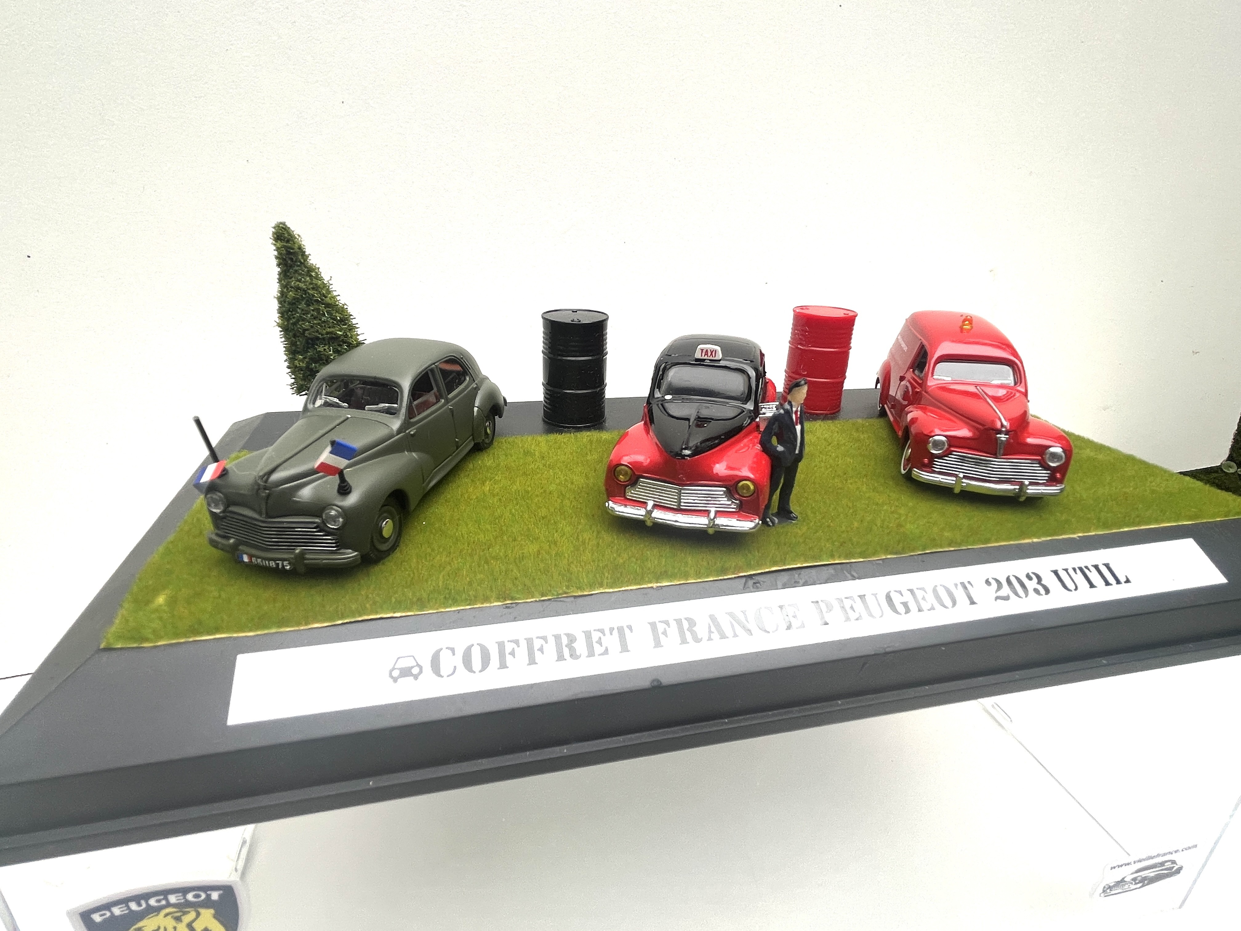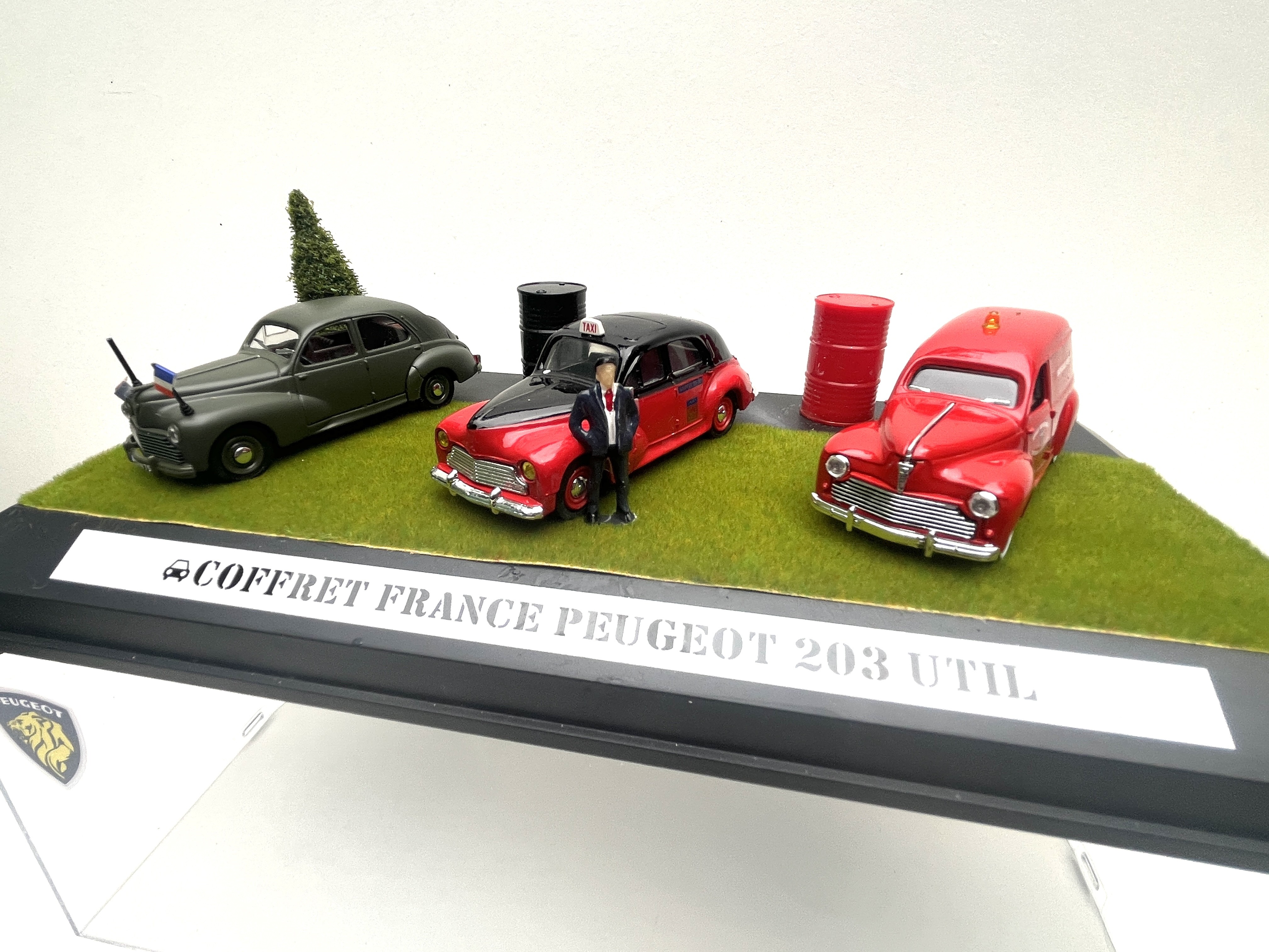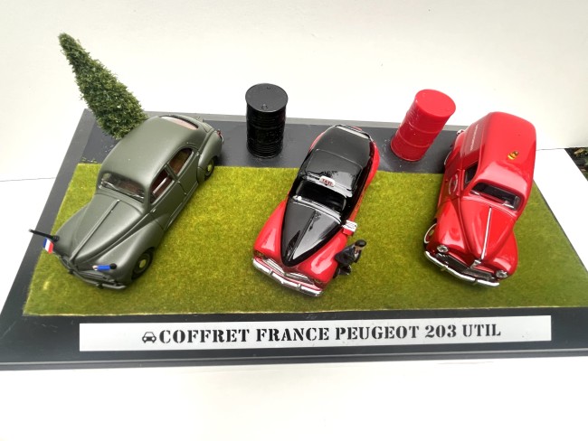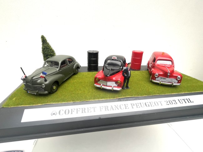 Coffret original avec trois Peugeot 203 utilitaires