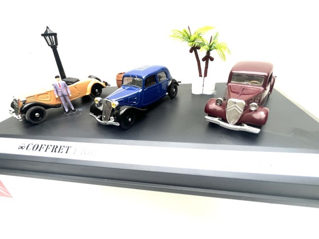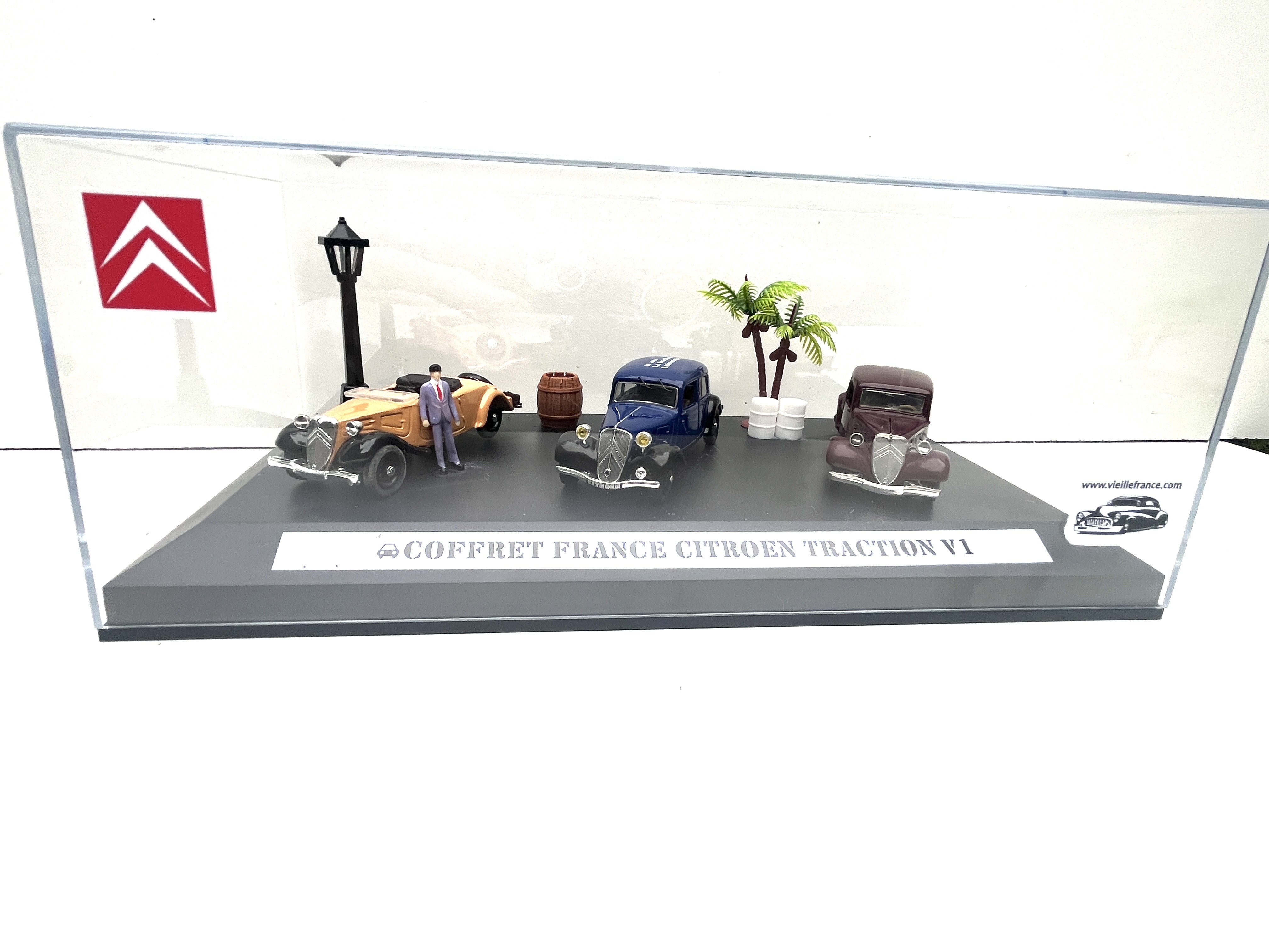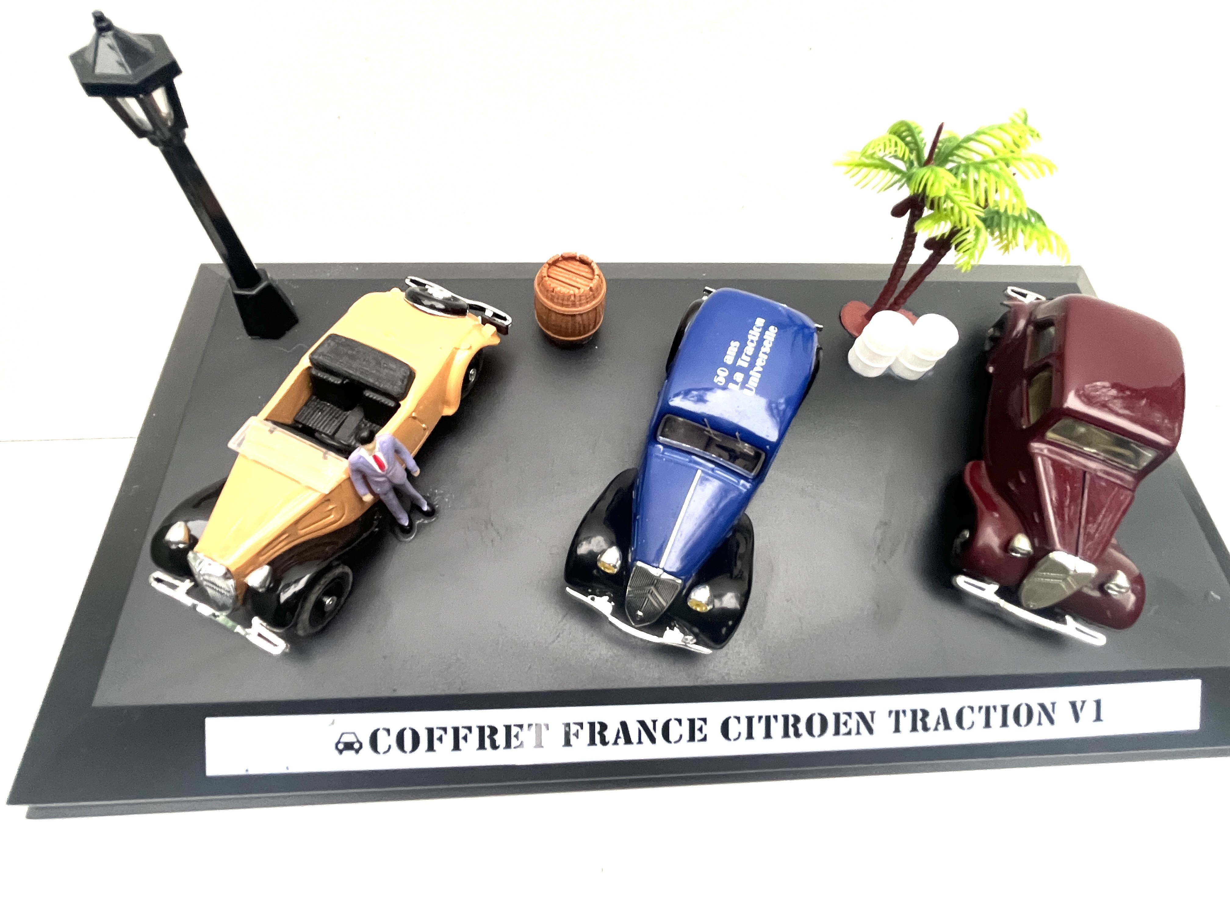 Avec 3 exemplaires de Traction Citroen : 7 CV Cabriolet bicolore / 11 Cv Berline 1936 LBS Surber / Edition limitée 20 ans de la Traction Universelle