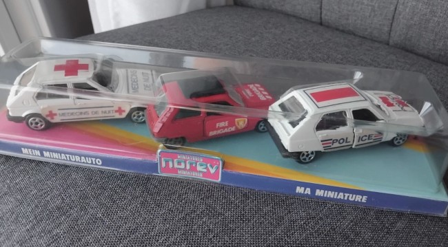 - une Renault 5 pompiers ( fire brigade ), rare version avec phares moulés avec la carrosserie, parfait état, complète.