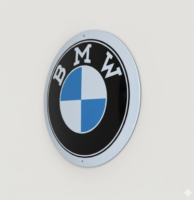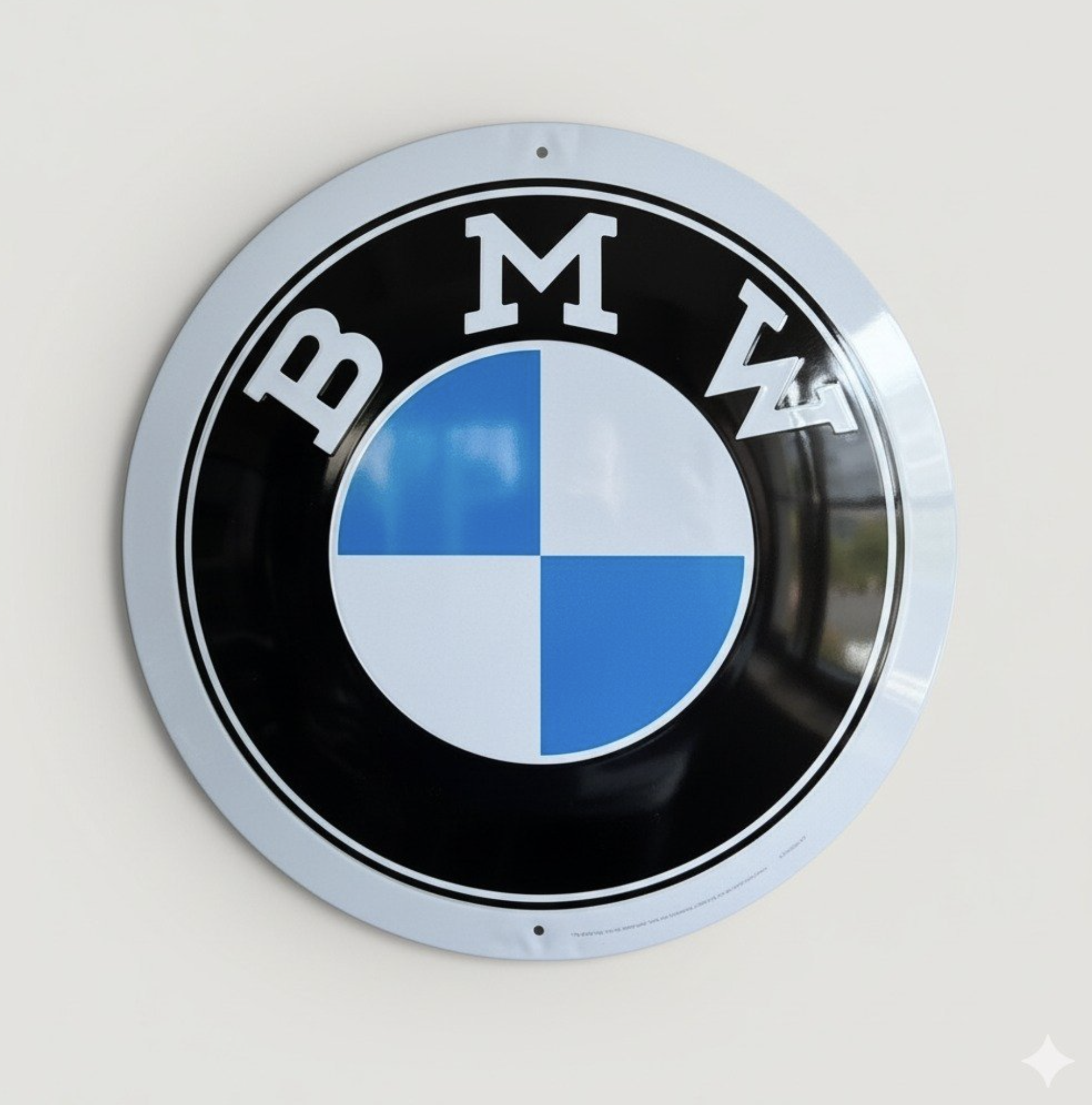 • Design : reproduction fidèle du logo classique BMW en tons blanc, noir et bleu marine, avec un effet légèrement vieilli pour un look rétro authentique.