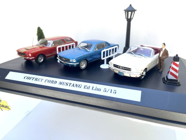 Avec 3 exemplaires de Ford Mustang : Convertible 1964-1/2 / Hard Top 1967 / Station Wagon 1965