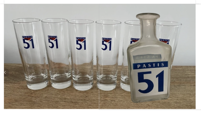 Ensemble Anisette 51 avec 6 verres et Carafe Assortie